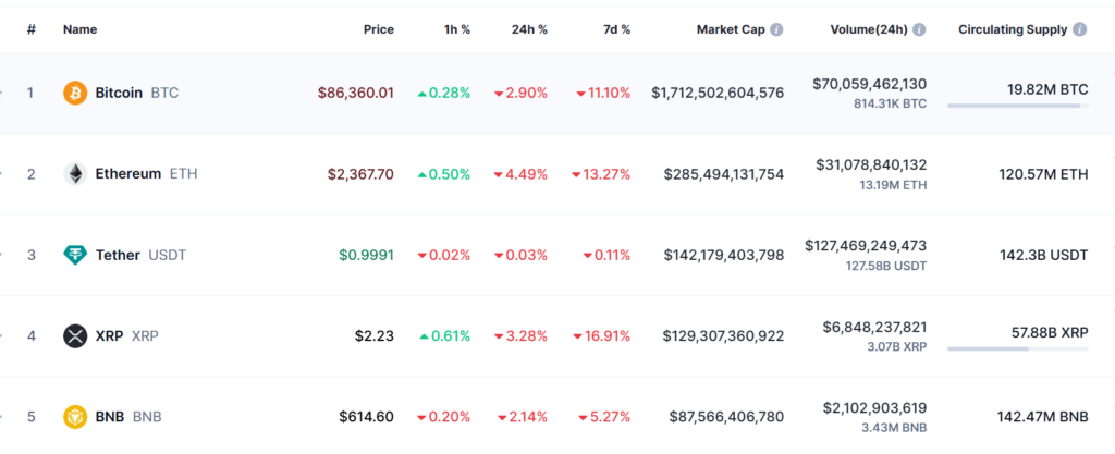 Ces derniers jours, le marché crypto a été secoué par de nouvelles turbulences. Ether (ETH) et XRP, deux des plus grandes cryptomonnaies, ont ainsi chuté de près de 5% et de 3% au cours des dernières 24 heures. De même pour DOGE qui a connu une baisse d’environ 2%. Cette baisse s’inscrit dans un contexte de volatilité accrue, marqué par plus de 600 millions de dollars de liquidations sur les contrats à terme.
