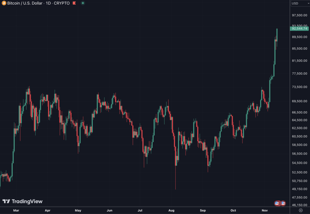Au moment de la rédaction de cet article, le BTC a déjà réalisé un nouvel ATH et se négocie à 92 000 $.