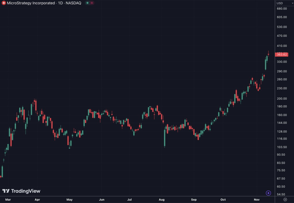 Le titre MSTR a connu un bond de 5,88 %, atteignant un sommet à 340 $ avant l’ouverture des marchés le 12 novembre.