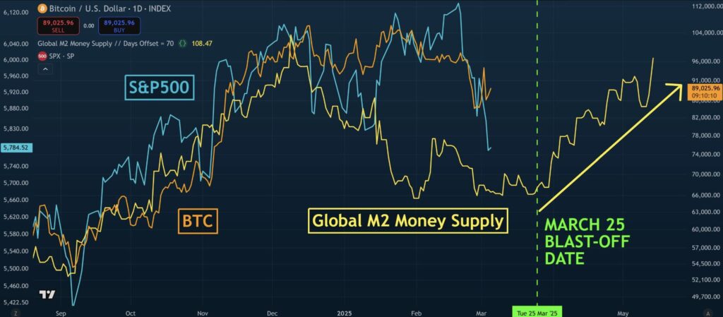 Outre la chute du dollar (DXY) américain, les données des liquidités M2 indiquent un pump à partir du 25 mars prochain. Certains investisseurs de la smart money se placent donc en amont alors que de nombreux facteurs macroéconomiques indiquent une hausse.