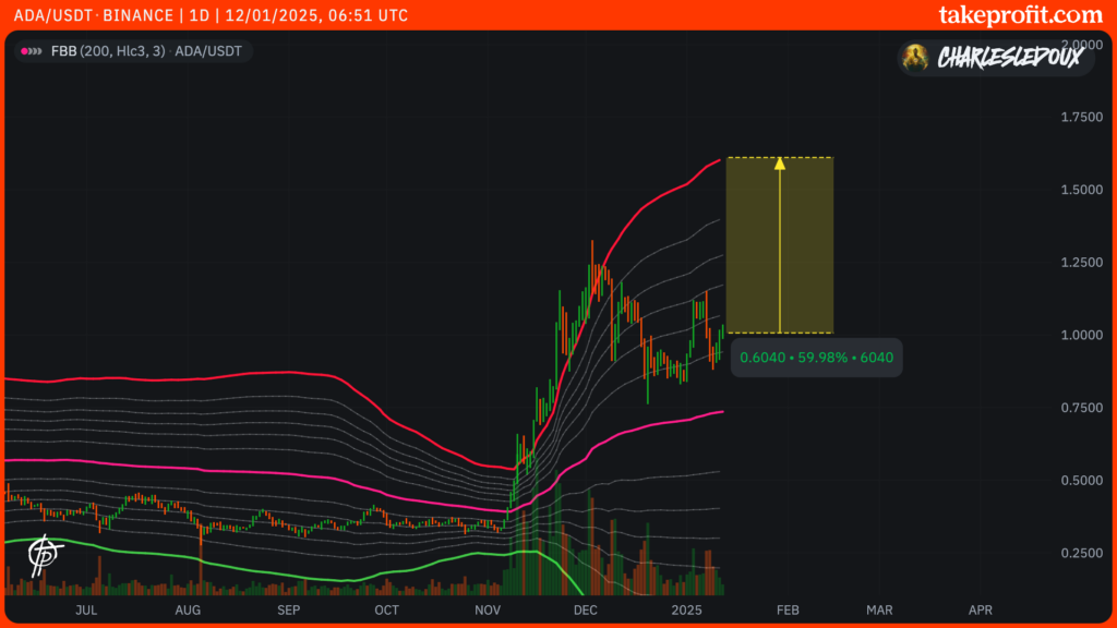 En effet, selon le Fibonacci Bollinger, le jeton ADA peut encore se heurter à la quatrième bande des 95 centimes. Toutefois, si le Bitcoin repart à la hausse, 1,60 dollar est la prochaine cible de Cardano pour le mois de janvier 2025. Ce qui représenterait une hausse de plus de 62%.