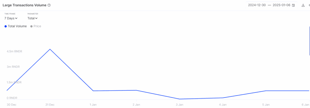 Les transactions de Render (RNDR) dépassant 100 000 $ ont connu une hausse spectaculaire de plus de 400 % en seulement deux jours, passant de 164 000 RNDR à 852 000 RNDR. Cette activité intense des baleines crypto représentant 76 % de l’offre totale de RNDR. Cela a inévitablement eu un impact majeur sur la volatilité des prix.