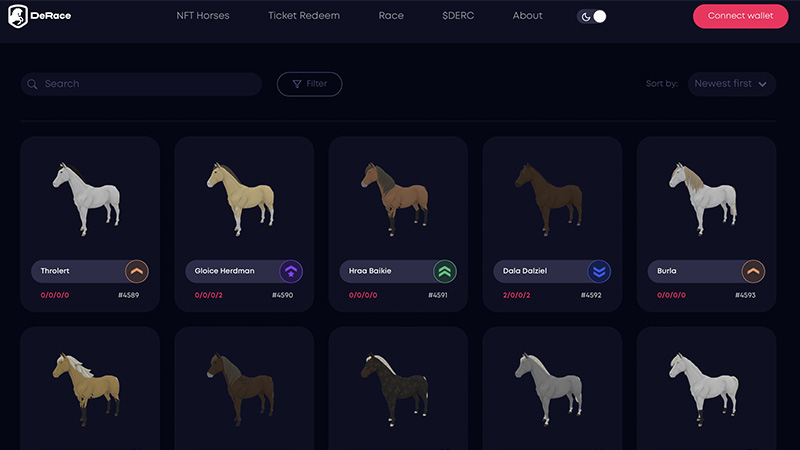 Il existe déjà des projets de NFT autour des courses de chevaux comme : DeRace, Pegaxy ou encore ZedRun. Les joueurs peuvent investir dans des types de chevaux différents et les vendre, les élever ou les opposer à d’autres chevaux.
