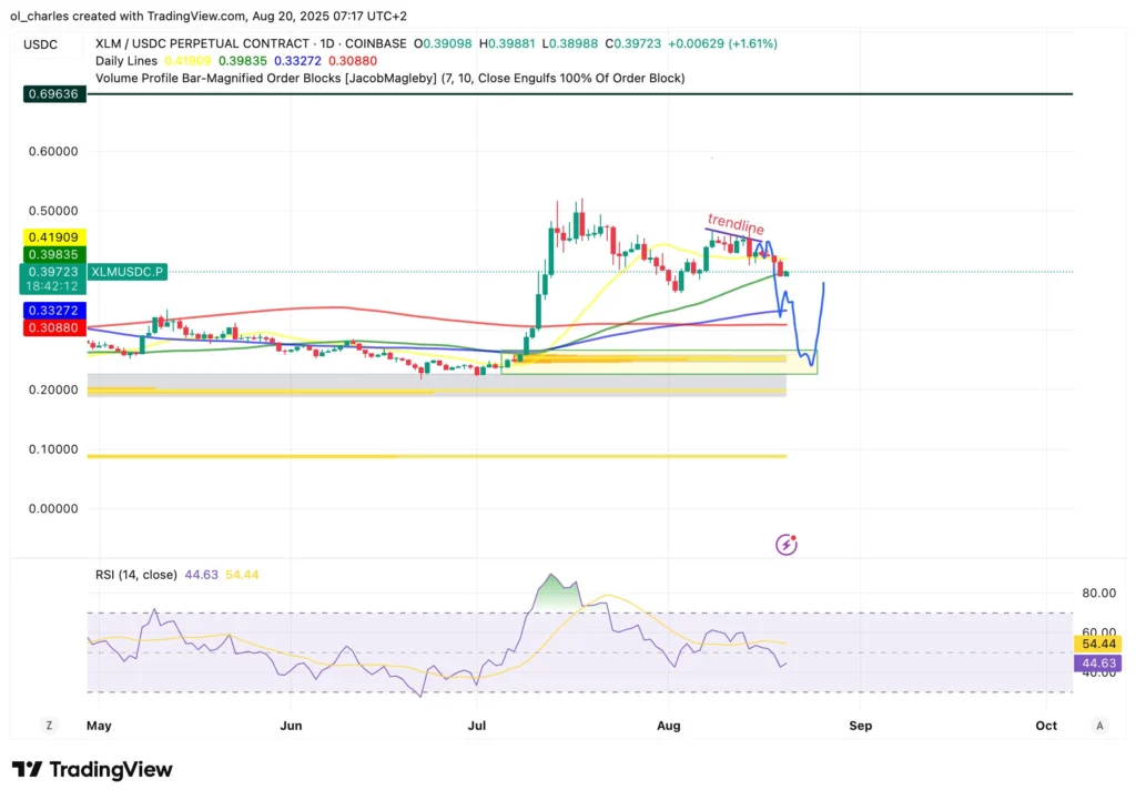 « Stellar $XLM est en phase de consolidation ! Les prochains supports se situent à 0,33 $ et 0,22 $. » – Ali, analyste crypto