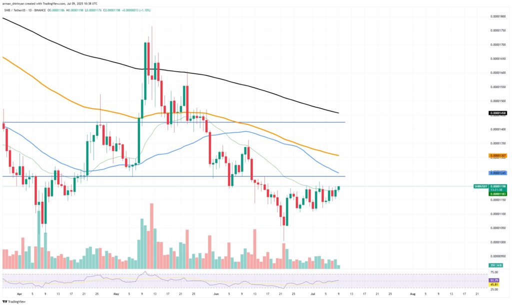 Le prochain niveau de résistance majeur pour Shiba Inu (SHIB) se situe dans la zone des 0,0000124 $ à 0,0000130 $. En cas de franchissement net au-dessus de ce seuil, le chemin semble libre vers 0,0000145 $ à court terme, voire 0,0000150 $ à moyen terme si l’euphorie du marché se confirme.
