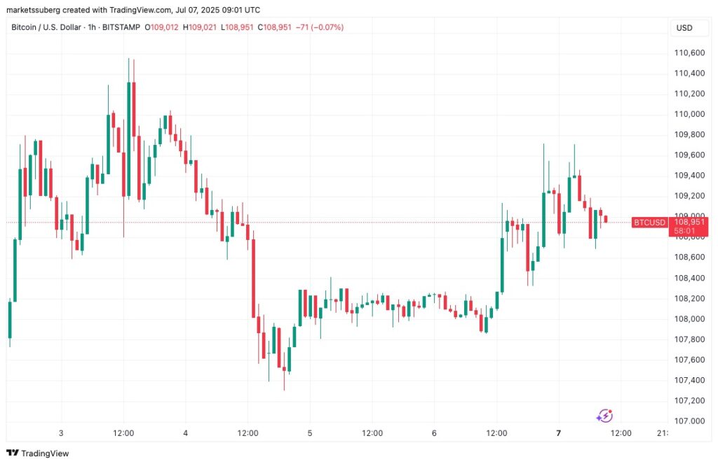 Les données de TradingView montrent que le BTC/USD a réussi à transformer le niveau clé de 108 000 $ en support solide. De plus en plus de traders s’attendent ainsi à ce que de nouveaux records historiques soient atteints prochainement.