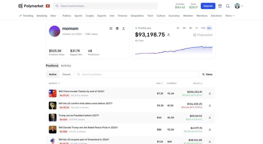 Les marchés de prédiction sont censés agir comme des machines à vérité, où l’argent réel force l’honnêteté. Pourtant, la peur de rater une opportunité (FOMO) pousse souvent les côtes vers de nouveaux ATH (sommets historiques) totalement déconnectés de la logique. En l’absence de teneurs de marché rationnels pour contrer cette frénésie, les traders informés disposent d’une voie royale pour accumuler des profits constants et peu risqués. C’est d’ailleurs sur ces irrationalités que les meilleurs bots de Polymarket génèrent des millions.