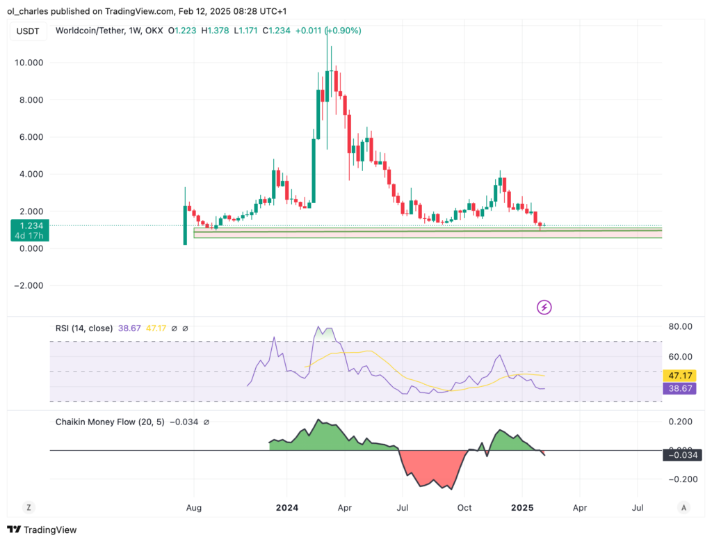 “La structure n’est pas claire en ce moment. Pendant toute cette énorme baisse des prix, les déséquilibres ont été respectés. J’attends donc que le prix atteigne 1,46-1,80 dollar et ensuite, je regarde le LTF pour voir soit des modèles de retournement, soit de continuation. Les balayages actuels étaient bons, mais le prix du worldcoin dépendra probablement des conditions générales du marché.”écrit-il.