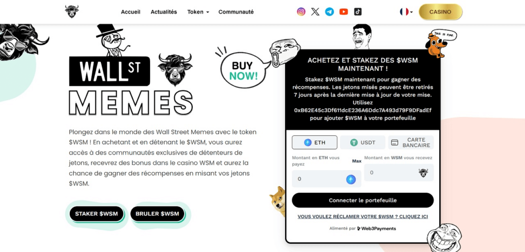 1. Wall Street Memes : un projet de crypto meme poussé par une communauté dynamique