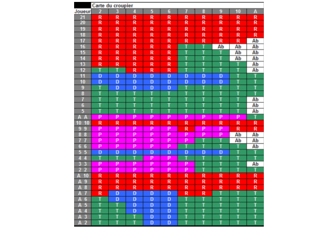 Cet outil permet ainsi de prendre une décision rapide, sans calcul complexe, en se basant sur la stratégie de base blackjack.