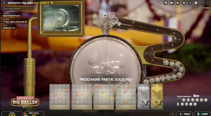 Chaque boule tirée génère un suspense intense : une simple mise peut alors se transformer en gain important. Cette mécanique crée une tension palpable tout au long de la partie de Monopoly Big Baller casino live.