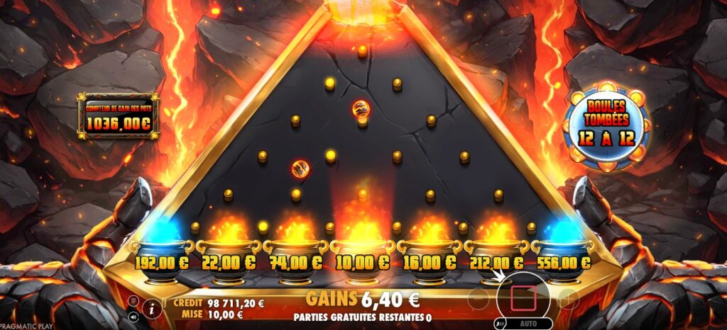 • Ou en faisant tomber une boule de lave dans un pot contenant des free spins