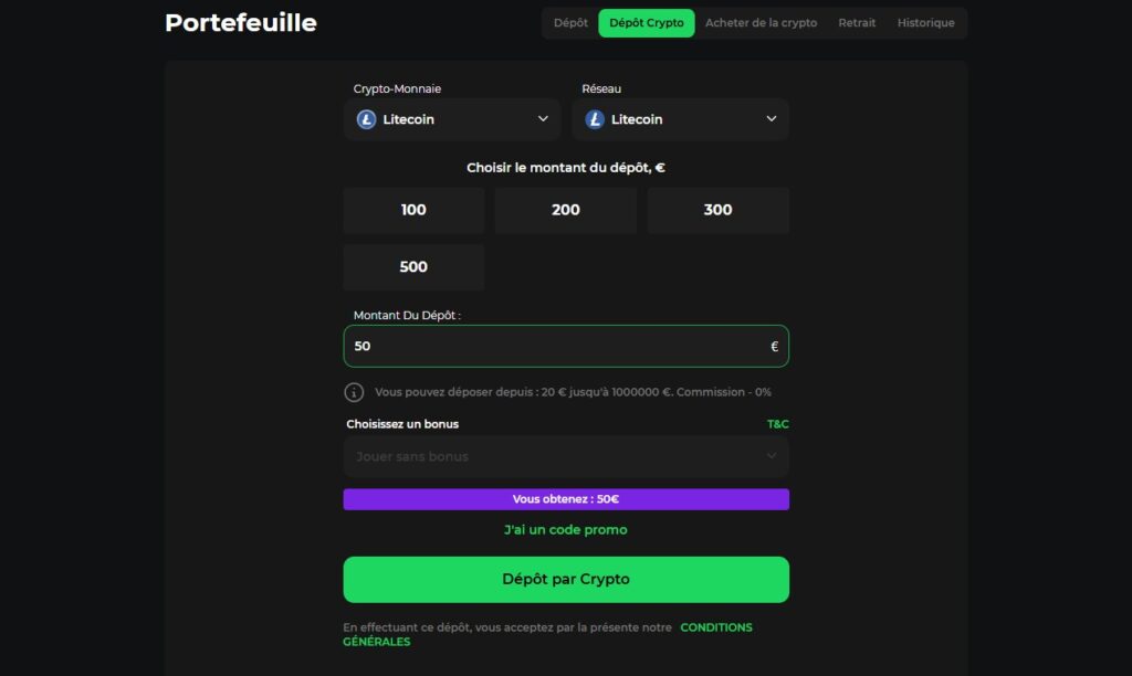 Ouvrez ensuite votre wallet Litecoin, puis initiez un transfert en collant l’adresse de dépôt du casino. Vérifiez bien que le réseau sélectionné est Litecoin, et non un autre comme Bitcoin ou Ethereum. Confirmez la transaction, puis patientez quelques minutes. Grâce à la rapidité du réseau Litecoin, votre dépôt est généralement crédité presque instantanément sur votre compte Betify.