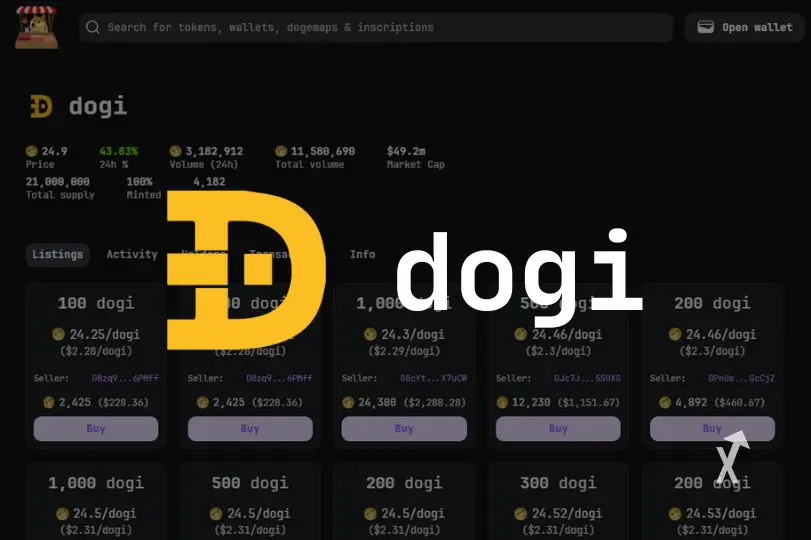 Dogi est la première crypto inscrite avec la norme DRC-20. Elle a été déployée en mars 2023 et a été son mint a été terminé en mai, au moment de l’engouement BRC-20.