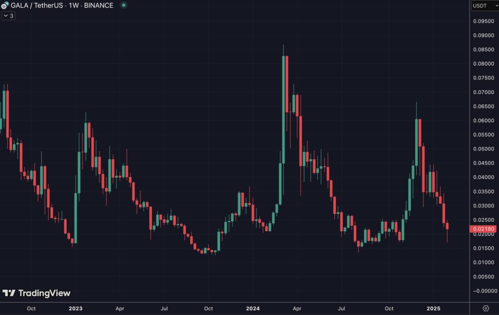 En matière de valeur, le jeton GALA navigue actuellement à travers une phase de réhabilitation après avoir été impacté par le bear market de 2021/2022. Malgré ces défis, son prix demeure attractif, se situant bien en dessous de son sommet historique atteint en 2021.