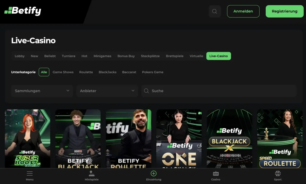 Betify hat sich 2025 als unverzichtbare Referenz für Liebhaber von Live Casinos etabliert. Mit mehr als 150 Live-Tischen, die rund um die Uhr verfügbar sind, bietet diese Seite eine beeindruckende Vielfalt. Besonders beeindruckt hat uns die außergewöhnliche Qualität des HD-Streamings und die ultraflüssige Benutzeroberfläche, die auf allen Geräten perfekt funktioniert.