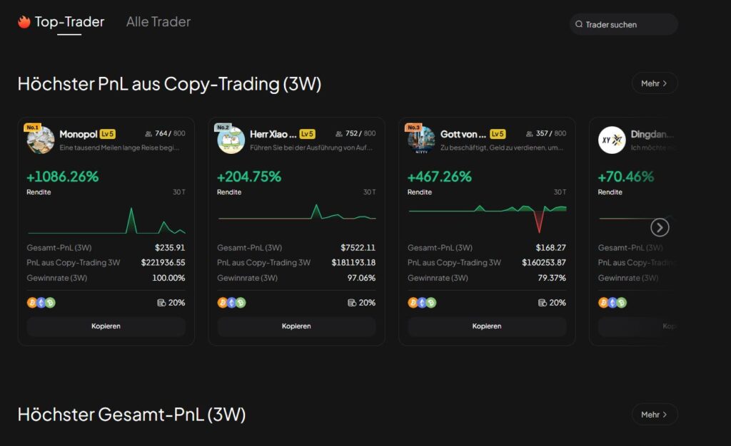 Das Copy Trading ist eine besonders nützliche Funktion für Anfänger oder diejenigen, die Zeit sparen möchten.