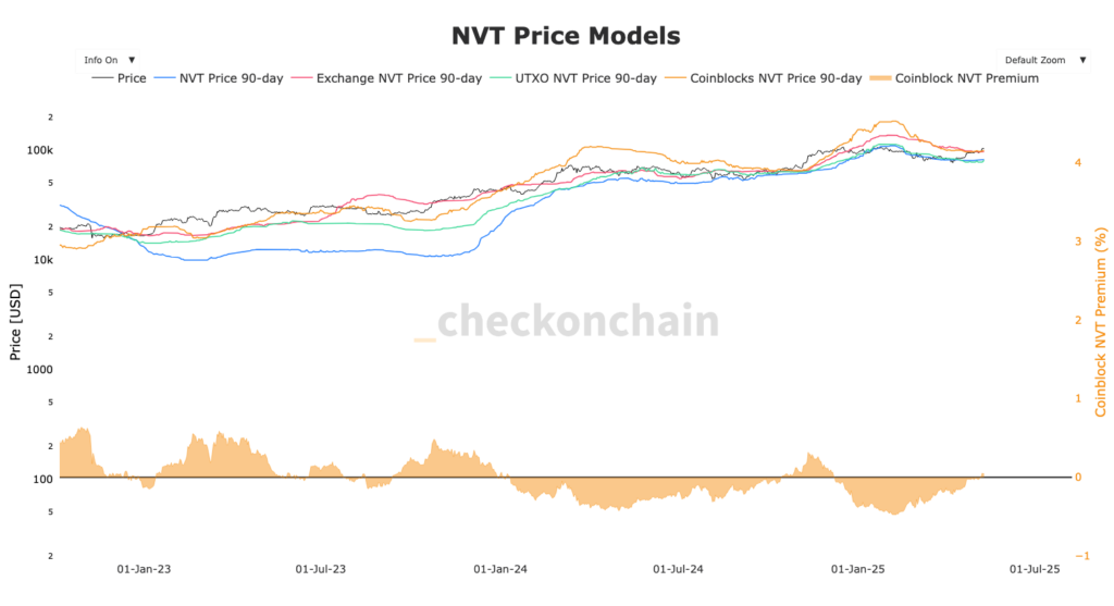 Das NVT ist erstmals seit Dezember 2024 wieder in die positive Zone zurückgekehrt. Diese Grafik zeigt daher eine zunehmende Aktivität und Interesse für BTC.