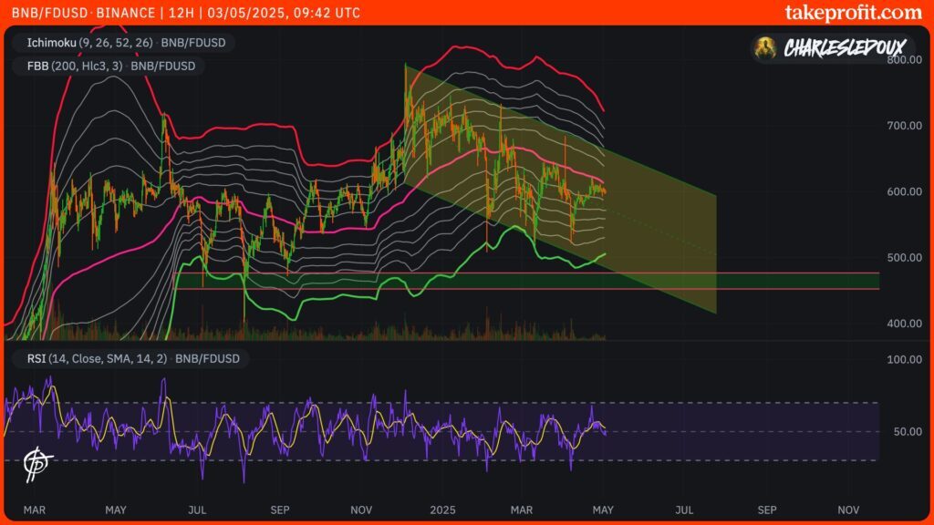 Technisch betrachtet zeigen die Grafikanalysen klare Signale für eine potenzielle Aufwärtsbewegung. Der BNB konsolidiert in der Nähe des 50-Tage-Durchschnitts und der Fibonacci-Retracement bei 50%, während er ein umgekehrtes „Schulter-Kopf-Schulter“-Muster bildet. Die nächsten Kursziele liegen bei 645$ (38,2% Fibonacci) und dann bei 800$ (vorheriges Hoch).
