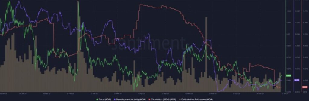 Seit dem Tiefstand von 0,536 $ Anfang Juli ist der Preis von Cardano um 22% auf 0,696 $ gestiegen. Trotz dieses kurzfristigen Aufwärtstrends bleibt der Wochenmarkt jedoch bärisch, mit einer Folge von niedrigeren Hochs und Tiefs seit Dezember.