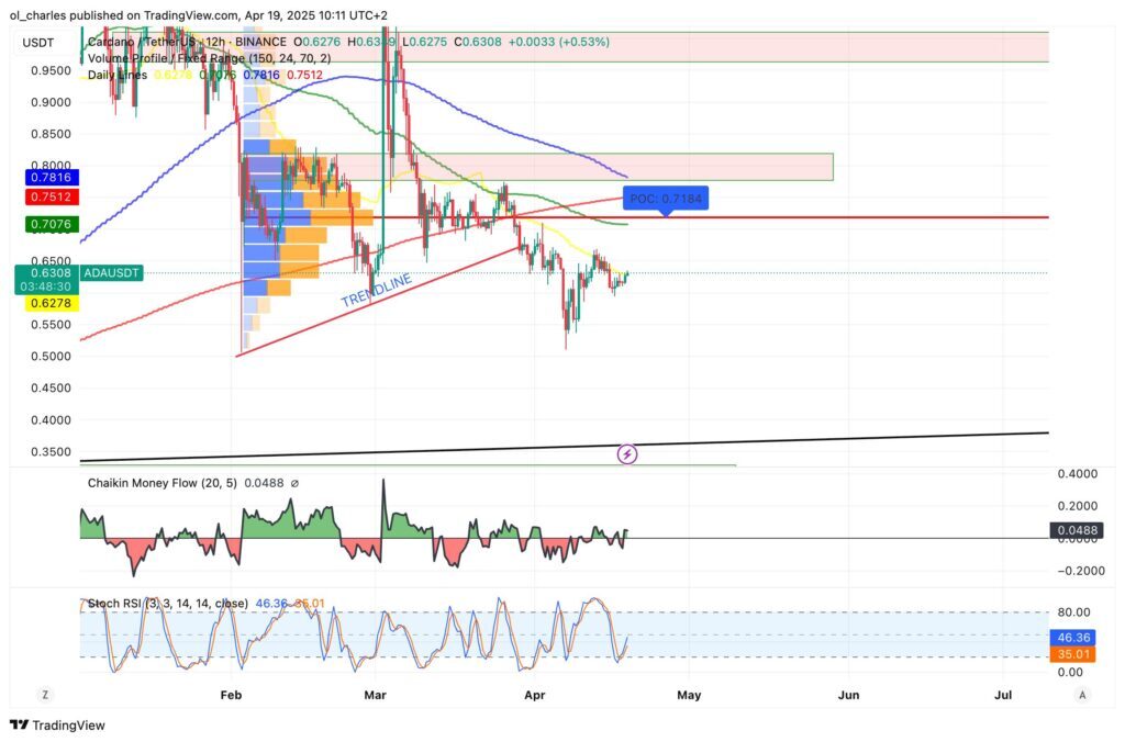 Zusätzlich liegt der 100-Tage-Durchschnitt bei 0,78 Dollar. ADA hat also eine echte Hürde bei 0,70 und 0,80 Dollar.