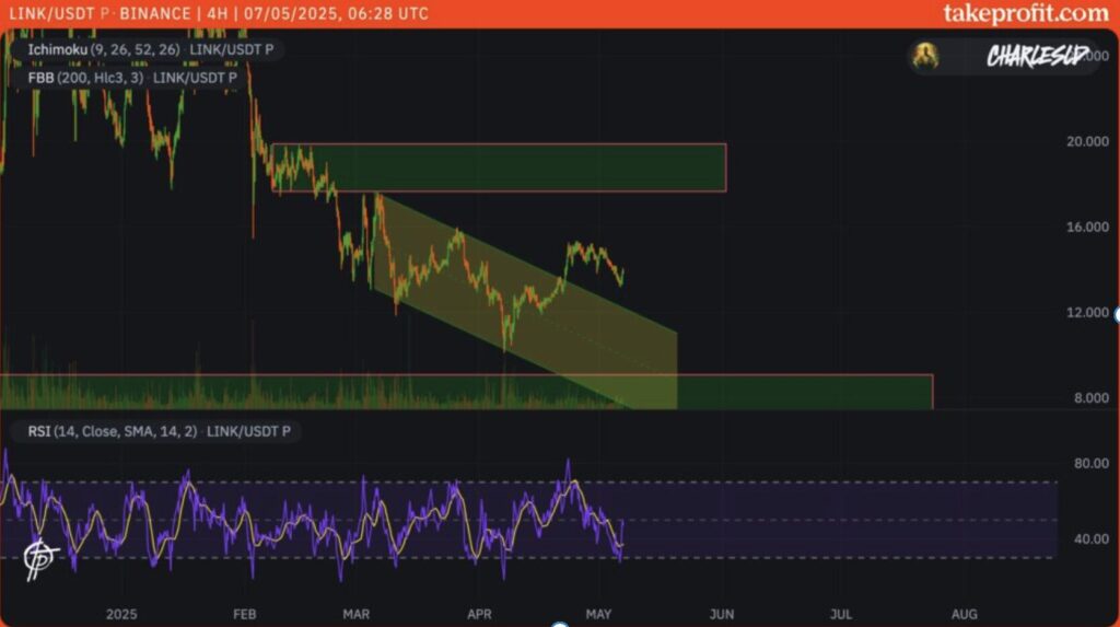Technisch gesehen bildet der LINK-Preis derzeit auf dem 4-Stunden-Chart ein bullishes Fortsetzungsmuster, gekennzeichnet durch einen absteigenden Kanal. Obwohl der bullishe Ausbruch dieses Musters noch nicht bestätigt ist, lassen zunehmender Kaufdruck auf einen bevorstehenden Durchbruch schließen.