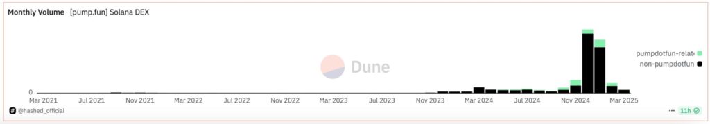 Laut Daten von Dune Analytics ist das Handelsvolumen auf Pump.fun, einem auf dem Solana-Ökosystem basierenden Token-Launchpad, zwischen Januar und Februar 2025 um 63% gesunken, von 119 Milliarden US-Dollar auf nur noch 44 Milliarden. Obwohl diese Zahl der niedrigste Stand seit Oktober 2024 ist, bleibt sie die viertgrößte seit dem Beginn der Plattformaktivitäten.