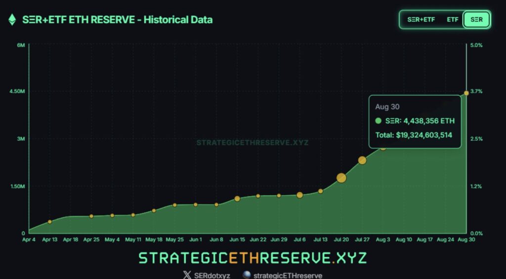 Trotz dieser äußerst positiven Vision hat ETH kürzlich eine Korrektur von 12% gegenüber seinem vorherigen Allzeithoch von 4.950 $ erlebt. Der Kurs fiel somit unter die 4.500 $-Marke.