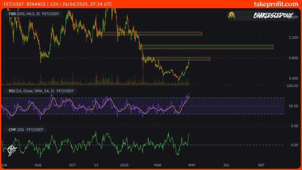 Dies ist besonders bemerkenswert, da einige große Investoren, die sogenannten „Wale„, die große Mengen an FET halten, begonnen haben, ihre Bestände zu verkaufen. Diese Gruppe hat tatsächlich 17,3 Millionen FET im Wert von 11,88 Millionen Dollar zu einem Durchschnittspreis von 0,687 Dollar verkauft.