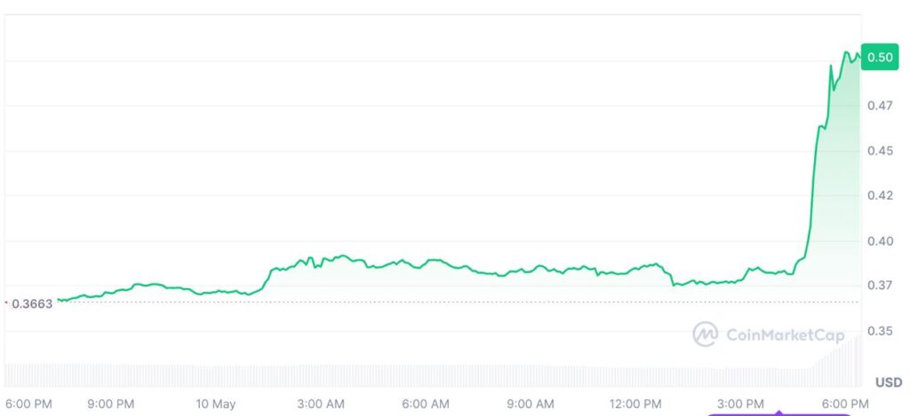 Mantra (OM) begeistert die DeFi mit einem Anstieg von 34,67 % in 24 Stunden. Der Token erreicht am 10. Mai 2025 0,4897 $, laut CoinMarketCap. Dieser spektakuläre Anstieg erfolgt nach einem massiven Absturz im letzten April, bei dem OM um fast 90 % gefallen war. Der Preis von Mantra (OM) war drastisch von 6,32 $ auf nur noch 0,50 $ gefallen. Heute überrascht OM erneut den Kryptomarkt mit einem Handelsvolumen von 282 Millionen Dollar und einer stark steigenden Marktkapitalisierung von 473 Millionen Dollar, was ihn auf den 128. Platz weltweit bringt.