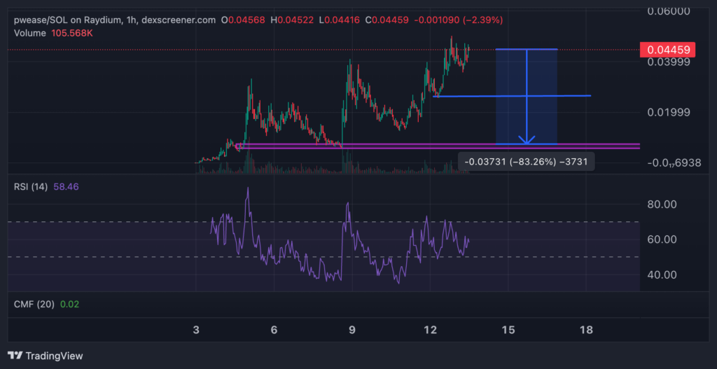 Zum Zeitpunkt der Abfassung wird der Memecoin PWEASE zu 0,447 Dollar gehandelt, was einer Marktkapitalisierung von 44 Millionen Dollar entspricht. Die Münze ist in den letzten drei Tagen um 220% gestiegen.