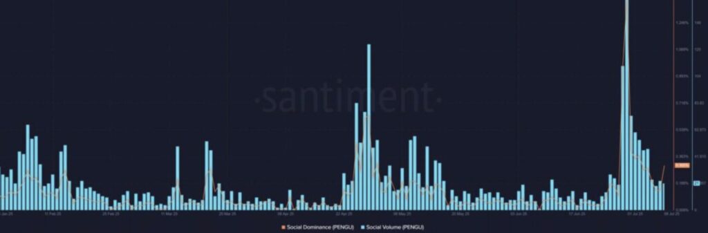 Tatsächlich haben sich die sozialen Indikatoren in den letzten Tagen erholt, wobei die soziale Dominanz von 0,18% auf 0,30% gestiegen ist. Diese Erholung folgt auf einen Rückgang der sozialen Diskussionen Ende Juni. Dieses wiedererwachte Interesse deutet auf ein erneutes Interesse am Projekt hin, mit einem schrittweisen Anstieg des sozialen Volumens, was auf ein Wiederaufleben des Community-Engagements hinweist. Solche sozialen Wiederbelebungen gehen oft bullischen Preisbewegungen voraus oder fallen mit ihnen zusammen, wenn das Interesse der Privatanleger wieder zunimmt.