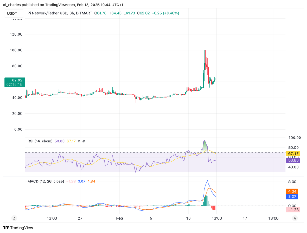 Infolge der Ankündigung stieg der PI-Token um 96 % und erreichte einen Preis von 99,61 US-Dollar. Anschließend fiel der Kurs jedoch um 37 %, sodass er momentan bei 61,69 US-Dollar notiert.