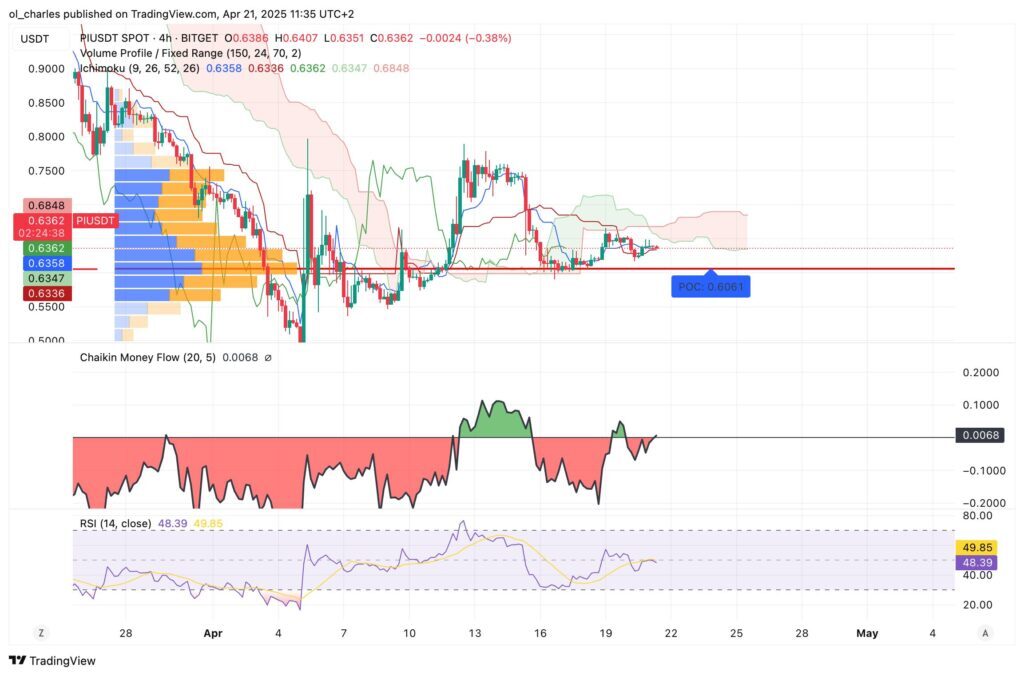 Zum Zeitpunkt der Abfassung wird der Preis des Pi Coin bei ungefähr 0,63$ gehandelt, was einem Rückgang von etwa 3% in den letzten 24 Stunden entspricht. Das Handelsvolumen ist ebenfalls um mehr als 36% gesunken, wobei in diesem Zeitraum 96,34 Millionen Dollar gehandelt wurden.