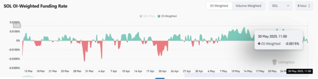 Diese Umkehrung der Finanzierung nach einer anhaltenden Aufwärtsphase zeigt einen Stimmungswandel auf den Derivatemärkten. Wenn sich das Verhalten der offenen Positionen nicht schnell umkehrt, könnten Verkaufspositionen die Preisentwicklung dominieren und SOL unter Druck setzen, kurzfristig niedrigere Niveaus anzusteuern.