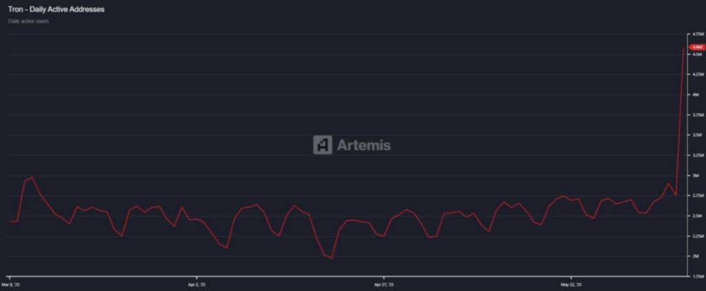 Dieses Phänomen wird als sehr ermutigender bullisher Signal gewertet, der darauf hindeutet, dass das Nutzerwachstum mit einer verstärkten Akkumulation und Nutzung von TRX in Transaktionen einherging.