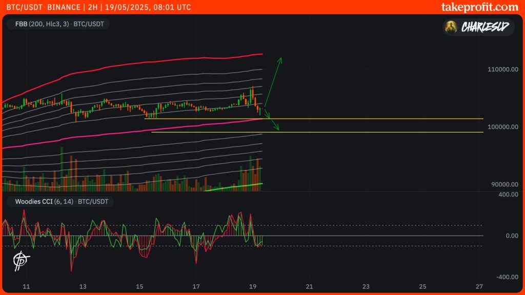 Aus technischer Sicht durchbrach der Bitcoin-Preis den Höchststand der letzten Woche bei 105.663 $, sah sich dann aber einem erheblichen Verkaufsdruck durch ausstehende Kaufaufträge ausgesetzt. Dies führte zu einem Rückgang von 4,23 % vom neuen Rekord bei 107.114 $ auf ein lokales Tief von 102.100 $. Wichtig zu beachten ist, dass BTC bis in die kritische Unterstützungszone zwischen 100.000 $ und 99.000 $ fallen könnte.