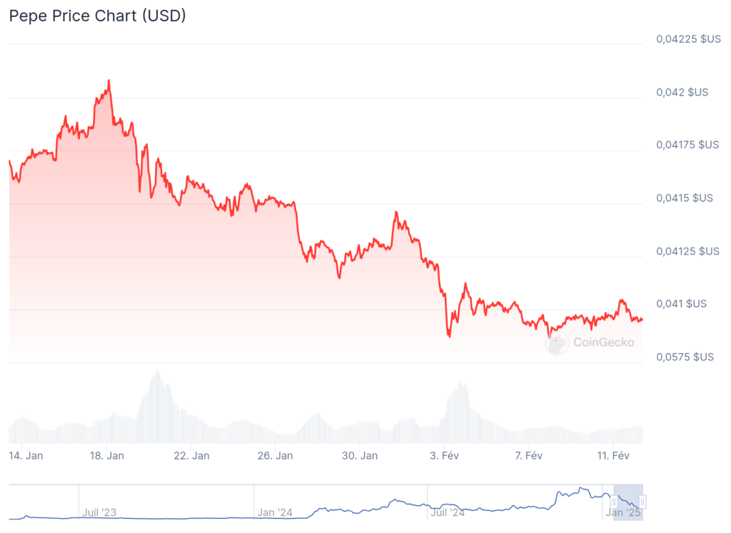 Nach einem steilen Anstieg durchläuft die Meme-Münze Pepe derzeit eine Phase der Turbulenzen. Wird der Preis dieser beliebten Kryptowährung das symbolische Niveau von 1 € erreichen können? Erfahren Sie, ob eine unvermeidliche Krise bevorsteht.