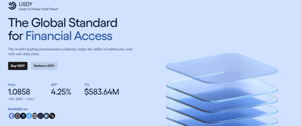 Attraktive Renditen : In einem Umfeld, in dem die Zinssätze traditioneller Sparkonten in vielen Ländern relativ niedrig bleiben, bieten die Produkte von Ondo wettbewerbsfähige Renditen. Der Stablecoin USDY beispielsweise generiert derzeit eine jährliche Rendite von etwa 5,1%, was deutlich höher ist als das Angebot der meisten traditionellen Banken.