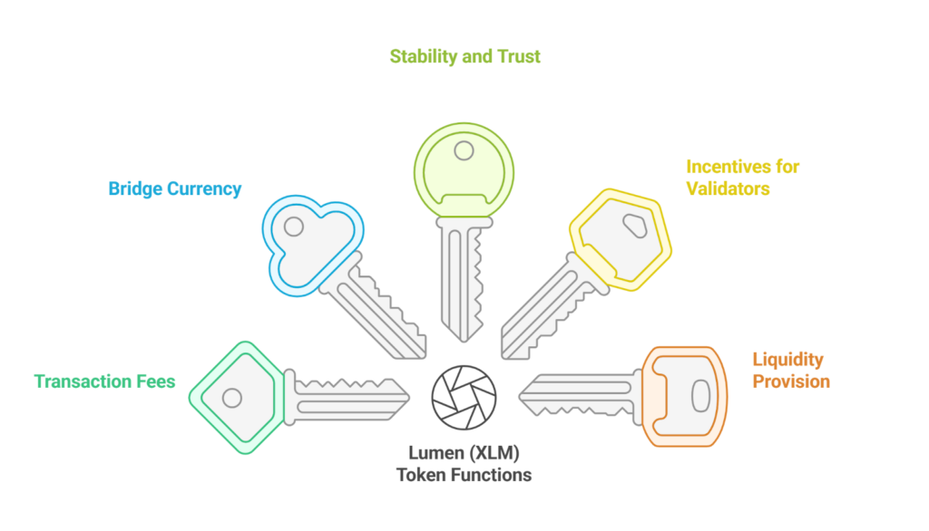 Der XLM (oder Lumen) ist die native Kryptowährung des Stellar-Netzwerks. Er dient sowohl als Zahlungsmittel für Transaktionsgebühren als auch als Brücke zwischen verschiedenen Währungen. Jede Transaktion erfordert eine winzige Menge XLM (0,00001 Lumen), was Angriffe verhindert und gleichzeitig minimale Kosten gewährleistet.