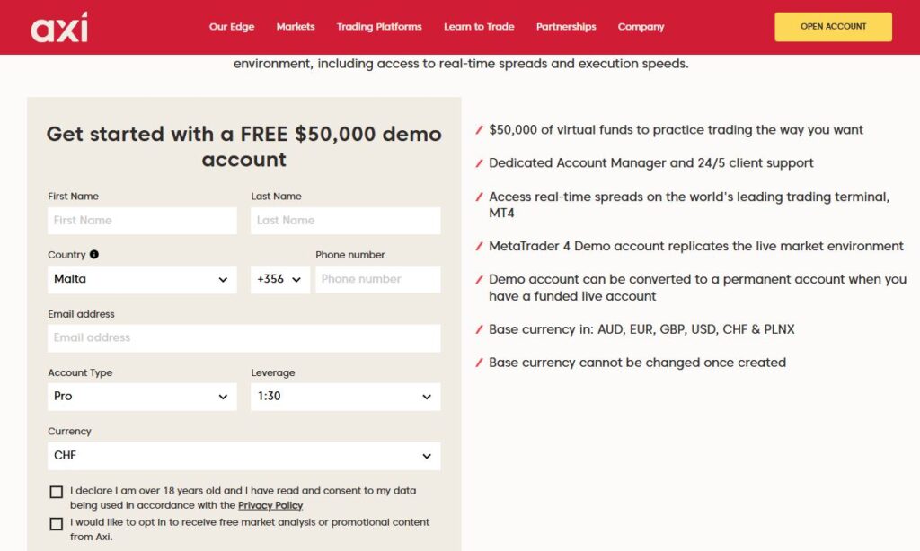 Keine Ein- oder Auszahlungsgebühren : Axi erhebt keine Gebühren für Ein- und Auszahlungen, was ein erheblicher Vorteil gegenüber einigen Wettbewerbern ist.