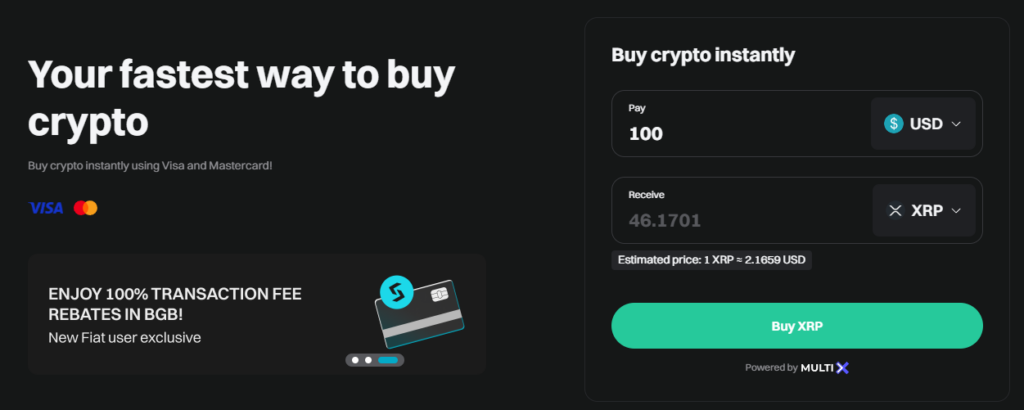Bybit is one of the most popular exchange platforms worldwide, particularly appreciated for its advanced trading features. The platform offers a “One-Click Buy” function that simplifies XRP purchasing for beginners. Bybit stands out for its high liquidity and tight spreads, ensuring competitive prices. The platform also offers sophisticated technical analysis tools and 24/7 customer support.
