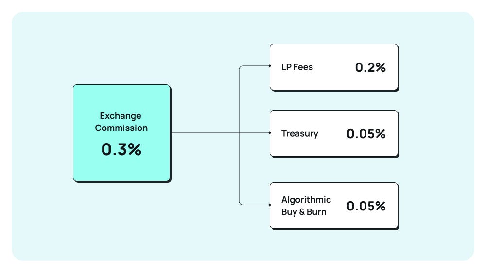 Executing an exchange on a DEX uses Automated Market Makers (AMM) that automatically calculate prices based on liquidity pool reserves. The interface presents two fields: the token to sell (FROM) and the token to buy (TO).