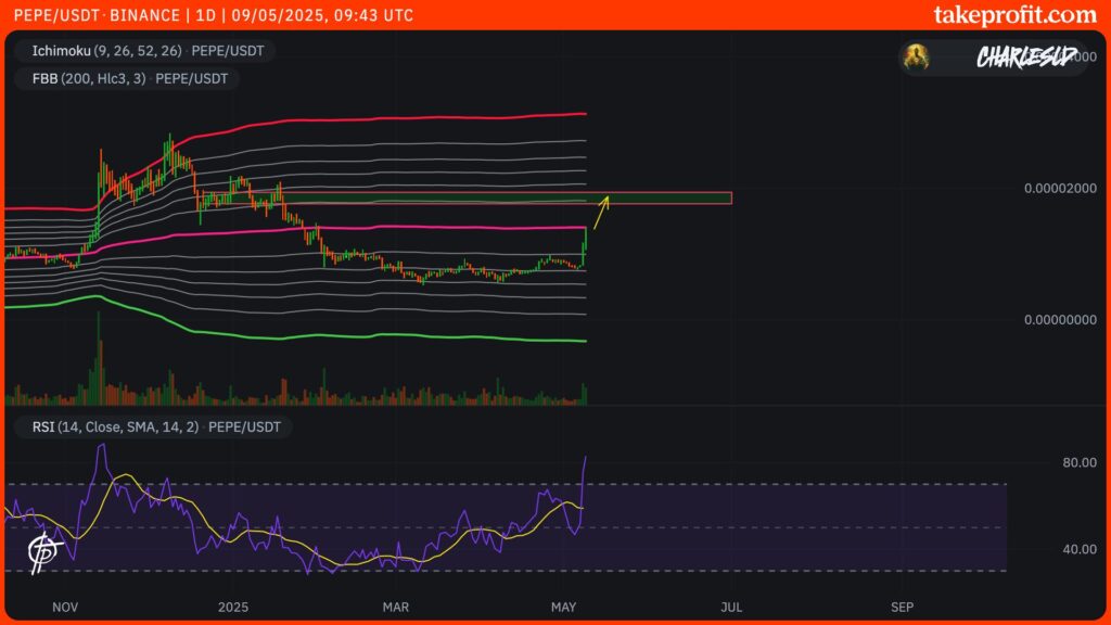 Explosive momentum in derivatives: The PEPE derivatives market is booming. Open interest in futures contracts has reached a peak of $531 million, indicating intense trader activity. On Binance, 65% of positions were bullish, triggering a “short squeeze,” liquidating $1.45 million of short positions and amplifying the surge.