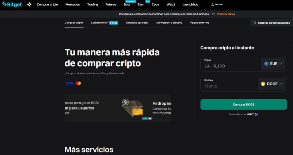 La plataforma propone un sistema de copy-trading innovador, permitiendo a los nuevos inversores seguir las estrategias de los traders experimentados. Bitget soporta más de 50 medios de pago diferentes, incluyendo tarjetas bancarias, transferencias SEPA y PayPal en ciertas regiones.