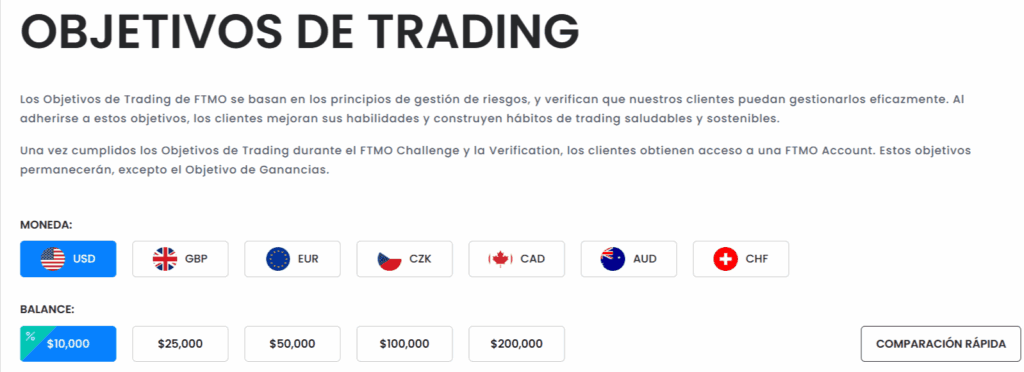 • Selecciona el importe del capital de trading deseado (10.000$, 25.000$, 50.000$, 100.000$ o 200.000$).