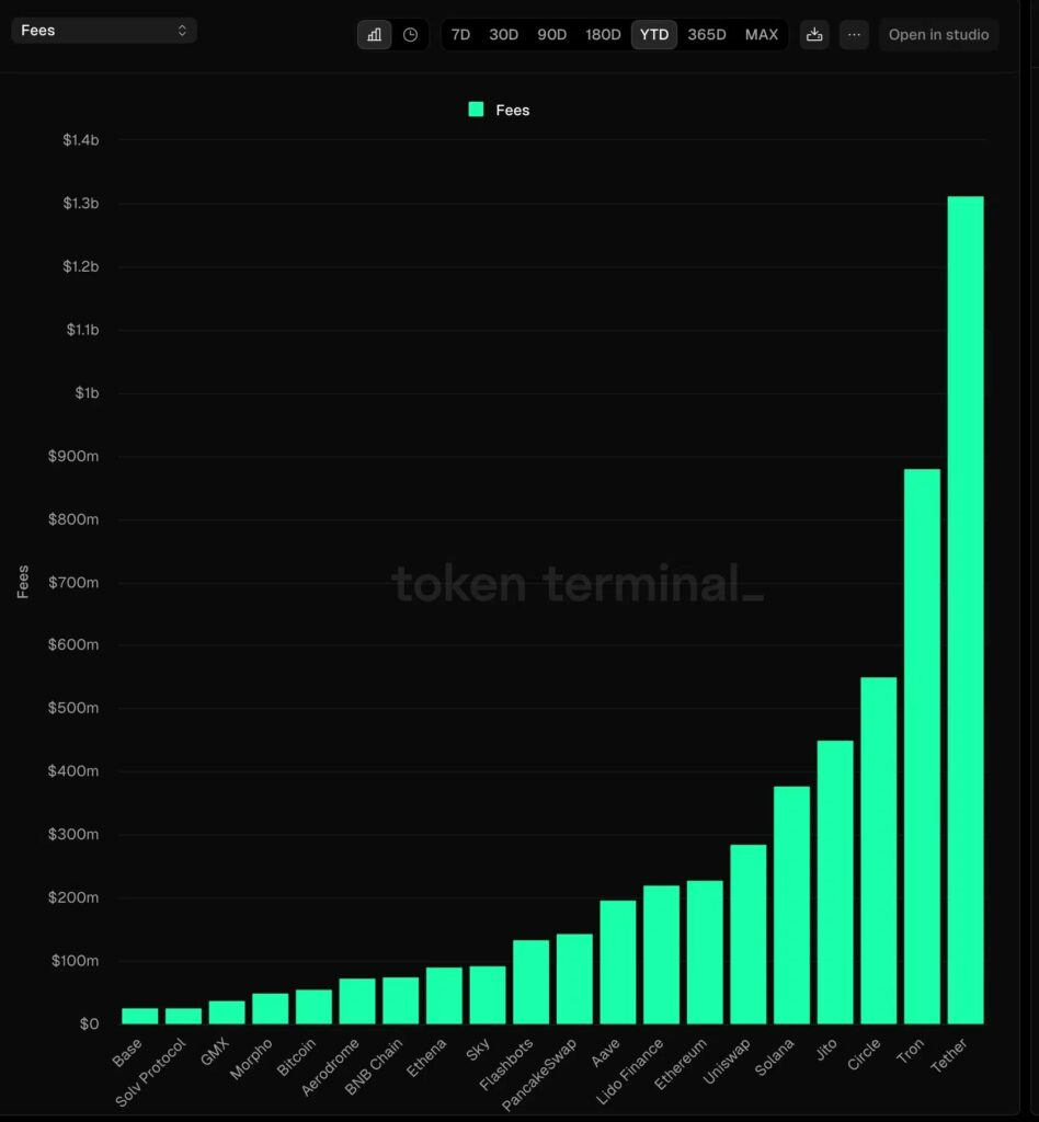 Por mucho tiempo, Ethereum ha dominado el mercado de las criptomonedas al generar las comisiones más altas. Esto se debe a su hegemonía en áreas como la finanzas descentralizadas (DeFi), juegos, tokens no fungibles (NFT) y stablecoins. Pero esta tendencia se ha revertido en 2025. Con solo 227 millones de dólares en comisiones generadas este año, Ethereum ha sido superado por redes como Tether (1,3 mil millones de dólares), Solana (376 millones) o Tron (880 millones), principalmente gracias a sus actividades relacionadas con los stablecoins.