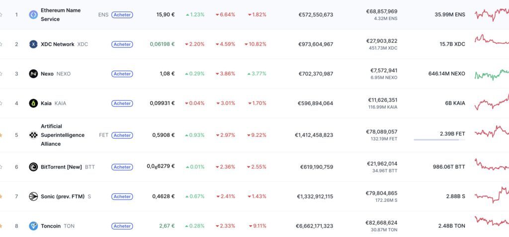 Los mercados atraviesan una fase de corrección, donde los bajistas han comenzado a tomar beneficios en las criptomonedas que mostraban tendencia alcista en los últimos días. El Ethereum Name Service (ENS) lidera con una caída de más del 8%, seguido por Sonic (antes FTM S) y BitTorrent (BTT) con retrocesos del 3% al 4%.