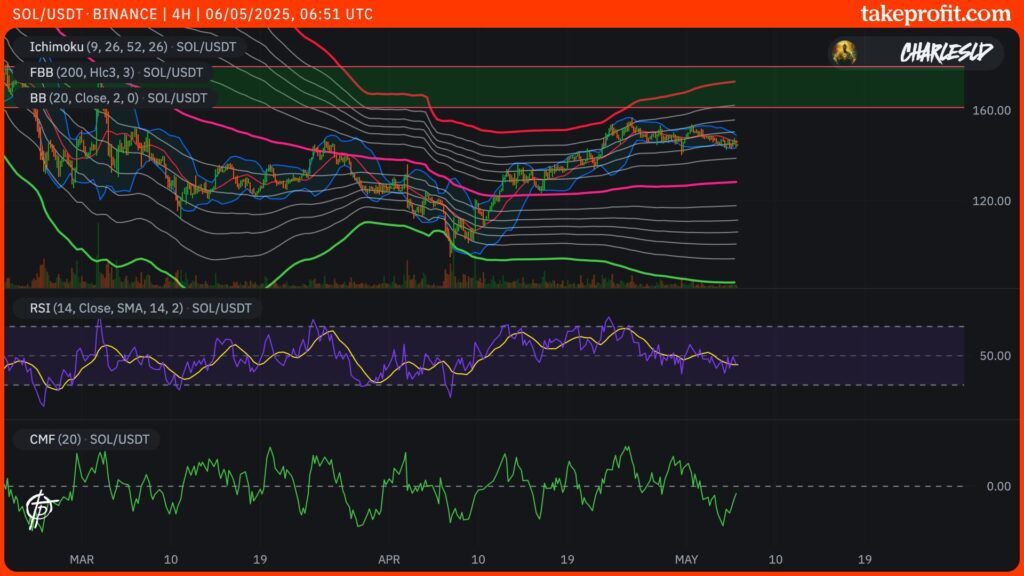 A pesar de la volatilidad actual, Solana mantiene una trayectoria sólida. Actualmente estable alrededor de los 145 $, el SOL muestra una leve caída del 1,06 % en las últimas 24 horas, pero se mantiene claramente por encima de sus medias móviles clave, un signo técnicamente muy alentador.