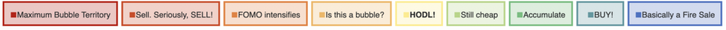 En un mercado alcista, el Rainbow Chart identifica varias etapas importantes: